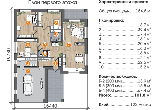 Одноэтажный и стильный дом с большой кухней-гостиной, большой гостиной, тремя спальнями и гаражом. Все что нужно для комфортной жизни и отдыха дружной семьи.